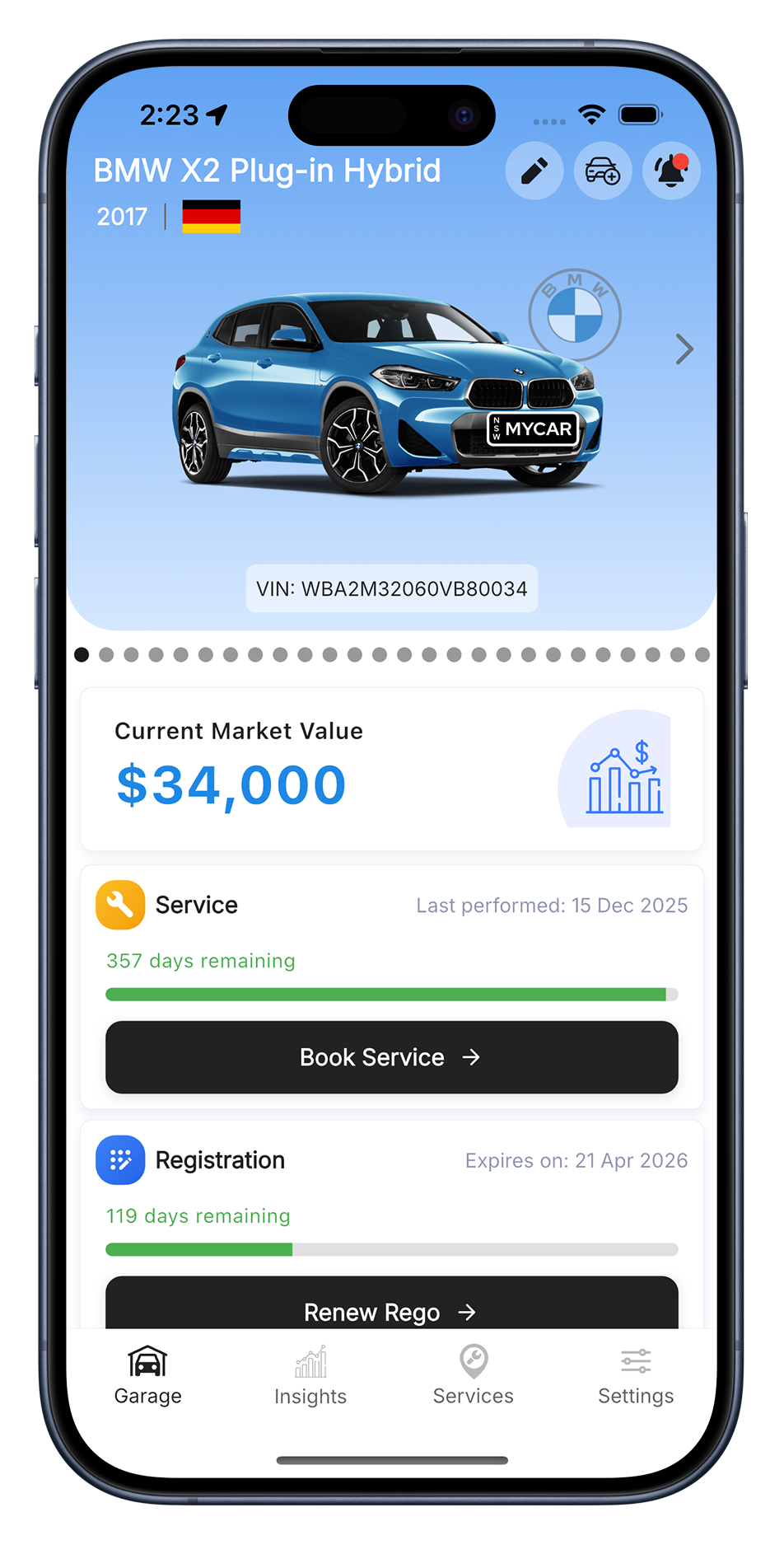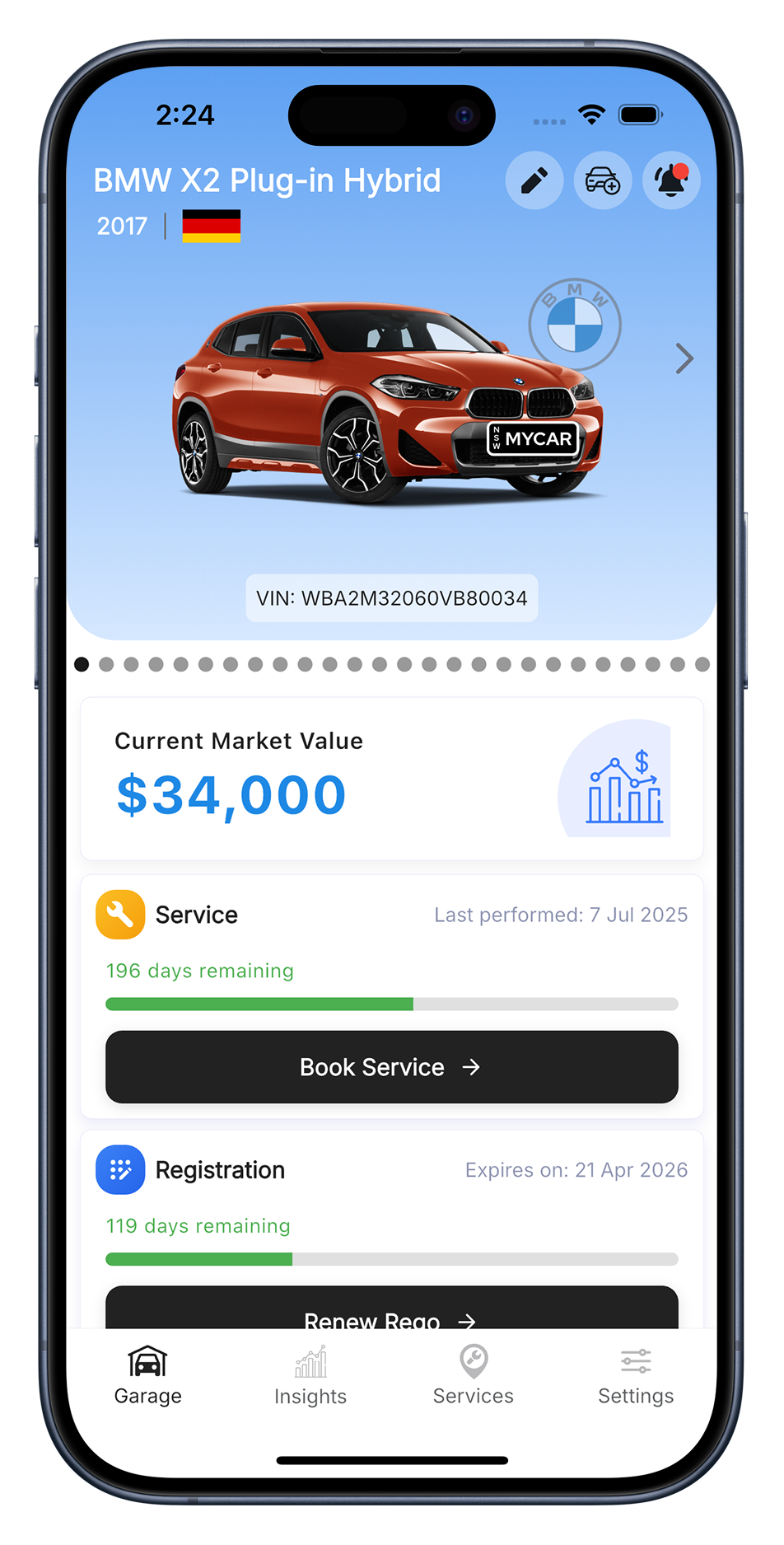 Monitors and reminders for all your car needs, so you never miss a service or rego again.